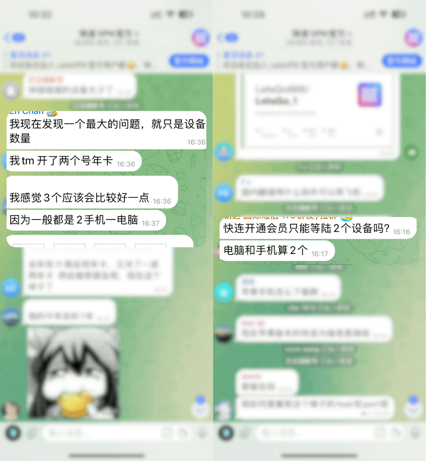 不只是商店评论区,在快连 VPN 官方用户群中也是如此,用户对于快连 VPN 的使用体验极其满意,对客服的高效反馈也大加赞赏,可一旦谈到开放第三个设备共享这件事,就会引起群友们“群起而攻之”。